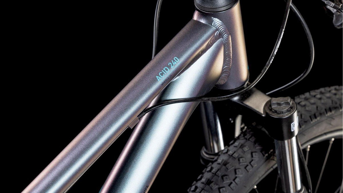 Concessies doen om dat het ‘toch maar’ een kinderbike is? Absoluut niet! De Acid 240 Disc is gemaakt van hetzelfde hittebehandelde 6061 aluminium als onze grote-mensen-bikes, inclusief nokjes voor een bidonhouder en spatborden. Het frame is daarom net zo licht en degelijk, maar met de juiste proporties voor kinderen. Ook de geometrie is maatwerk: speels en levendig, maar tegelijkertijd stabiel en goed controleerbaar. En omdat we weten dat een valpartij desondanks niet uitgesloten is, hebben we de achterpat waaraan de derailleur is bevestigd vervangbaar gemaakt.